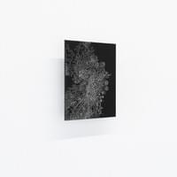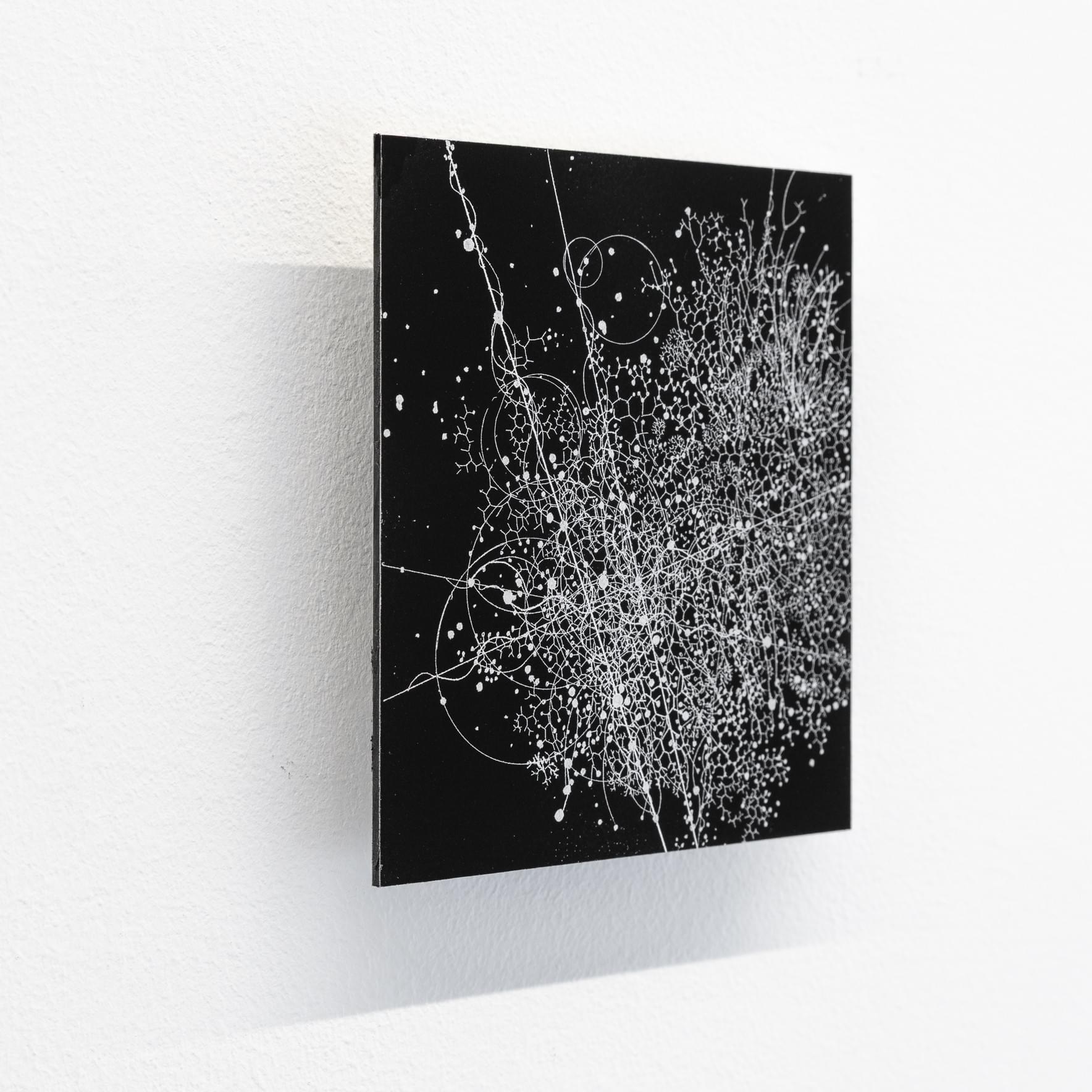 sTOC #19, 2024, 12x10cm, black paint on Dibond, partly removed with a fine needle.