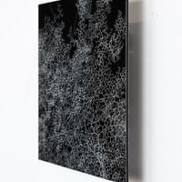sTOC #32, 2024, 40x30cm, black paint on Dibond, partly removed with a fine needle.